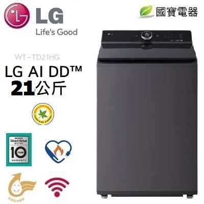 請先詢價LG 樂金 AI DD™ 21公斤蒸氣直驅變頻直立式洗衣機 WT-TD21HG