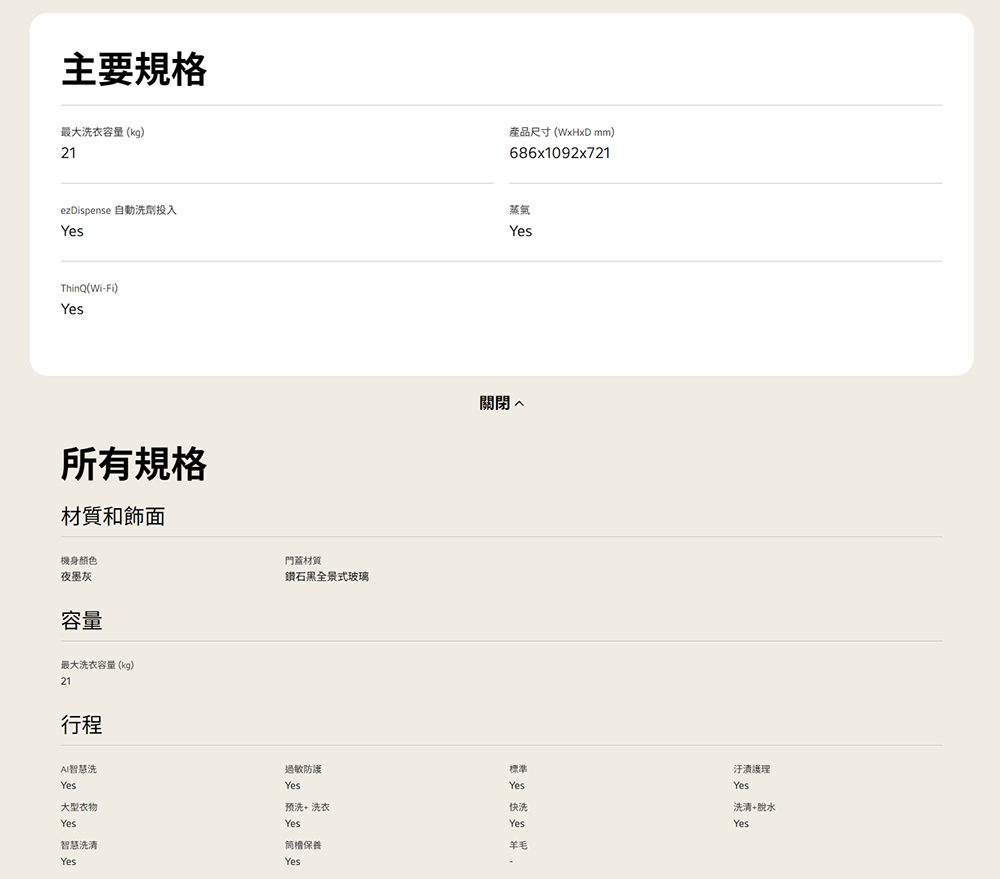 洗衣容量(公斤):21