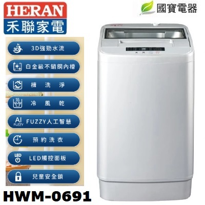 HERAN 禾聯6.5公斤全自動洗衣機 HWM-0691