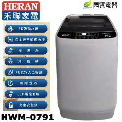 HERAN 禾聯7.5公斤全自動洗衣機 HWM-0791