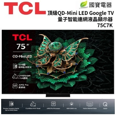 TCL 75吋 頂級 QD-Mini LED Google TV 量子智能連網液晶 75C7K
