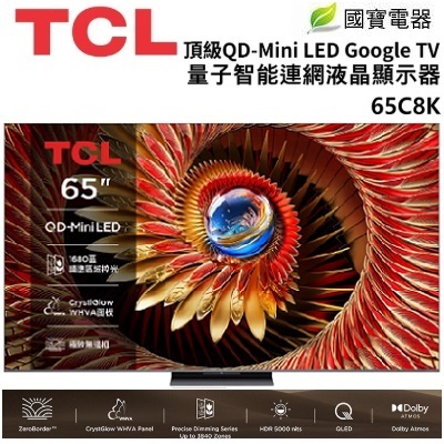 TCL 65吋 頂級 QD-Mini LED Google TV 量子智能連網液晶 65C8K